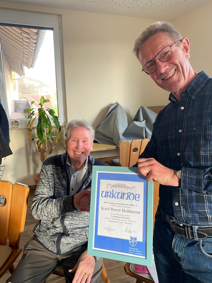 | Ehrung Karl Horst Heilmann für 70 Jahre aktives Singen |