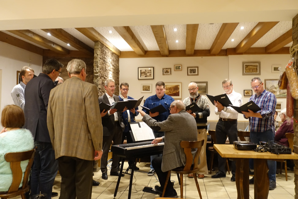 Am 9.12.2023 fand wieder unser diesjähriger Familienabend im Gasthaus Dörsthof statt. Ein Termin, auf den sich wohl alle Vereinsmitglieder als gesellschaftlichen Höhepunkt des Jahres freuen. Zusätzlich geladen waren auch in diesem Jahr wieder die Familien, sowie Freunde und Helfer des Vereins. Gesungen wurde an diesem Abend nicht nur von den Sängern des Vereins, die eine Sammlung weihnachtlicher Lieder zum besten gab, sondern auch von den Gästen, die fröhlich mit einstimmten. Durch das Programm führte wieder unser Vorstand Thomas und Stefan, denen an dieser Stelle hierfür gedankt sein soll. Ein weiteres Highlight des Abends waren die Ehrungen unserer Sänger Bernd und Edgar für 50 und 70 Jahre Treue zum Verein. Das diesjährige Schinkenschätzen bot wieder Spaß und Spannung, erhoffte doch jeder für sich einen der begehrten Preise mit nach Hause nehmen zu dürfen. Abschließend sei allen gedankt, die zum Gelingen des schönen Abends beigetragen haben.