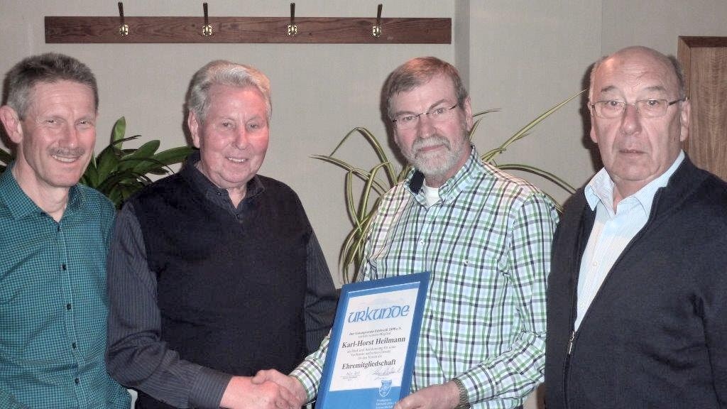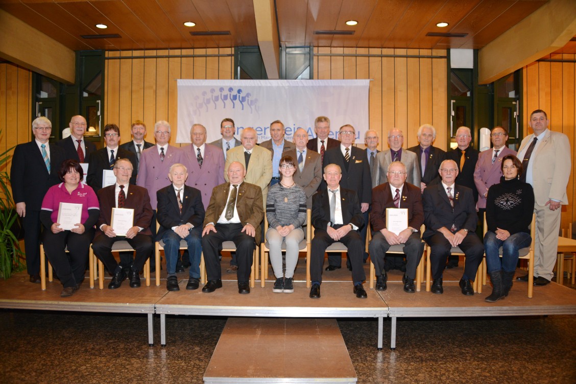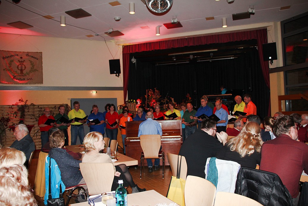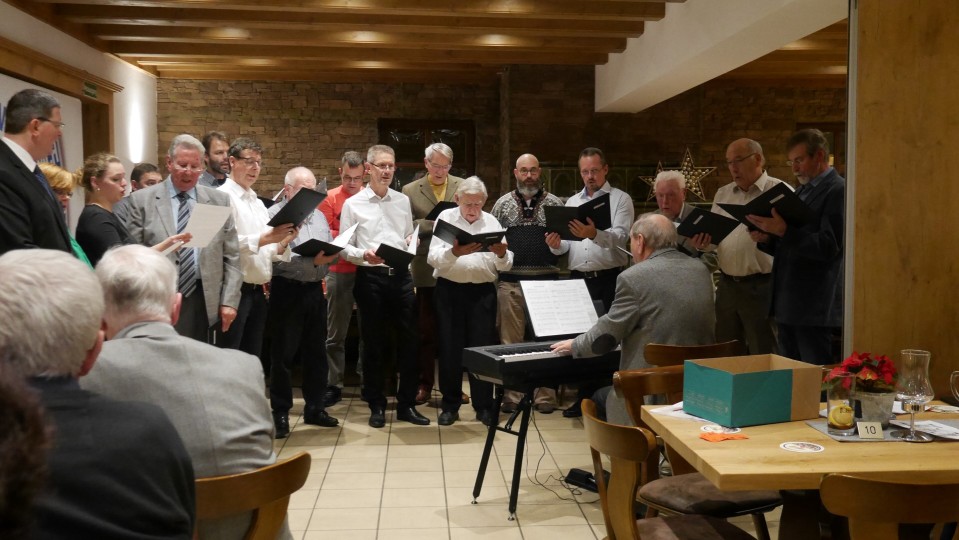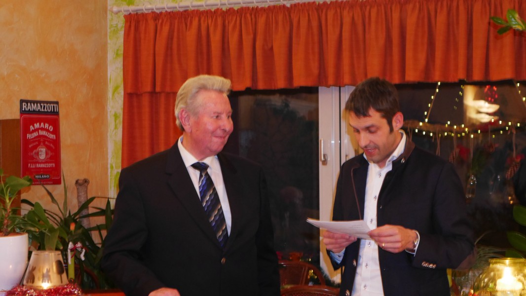 Nachdem der Männerchor unter der Leitung von Gottfried Kärner den Gästen einige Weihnachtslieder vorgetragen hatte, wurden die Vereinsmitglieder Otto Hartmann für 70 Jahre und Karl Horst Heilmann für 65 Jahre Mitgliedschaft geehrt. Der Vorstand dankte den beiden aktiven Sängern für die langjährige Treue zum Verein und hob hervor, dass sie im Chor in ihren Stimmlagen „Zweiter Bass“ und „Erster Tenor“ ganz wesentliche Stützen seien.