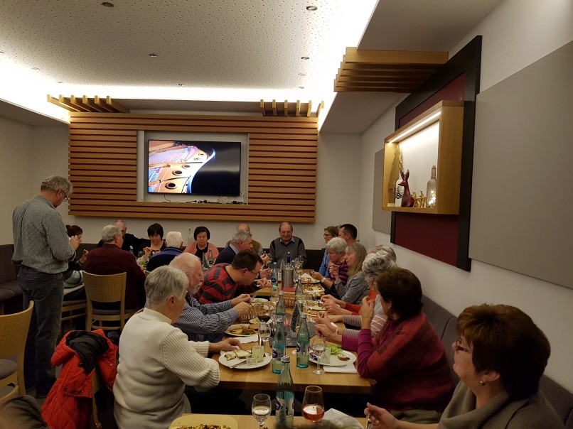 Nach der Wanderung schmeckte das Essen besonders gut. In angenehmer Atmosphäre und netter Runde wurde bei einem Gläschen Wein munter geplaudert und auch das eine oder andere Lied gesungen. Mit dem City-Bus ging es wieder zurück nach Michelbach.